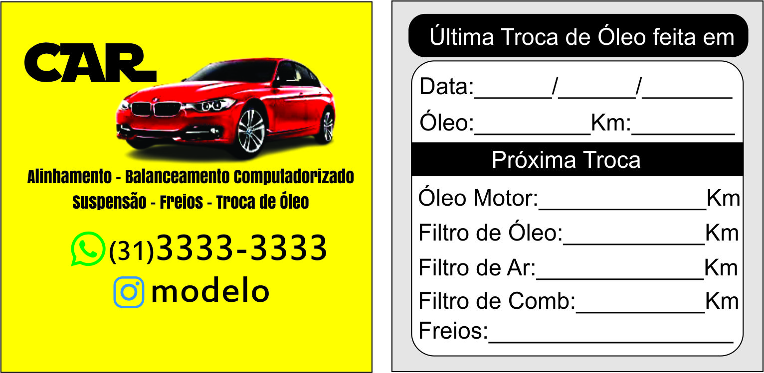 ADESIVO TROCA DE ÓLEO 4X1 COLOR FRENTE E VERSO P&B 1000 UNIDADES